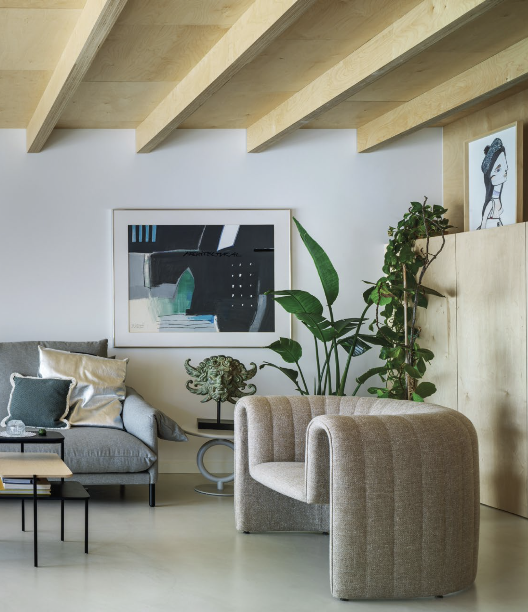 Conexión Natural. Rafa García a menudo se aventura con su bici por bosques y montañas, lugar en el que se ha inspirado para su nueva creación, Alpino. Los suaves picos de las almohadas y la base de los respaldos se solapan entre sí para simular un perfil montañoso.