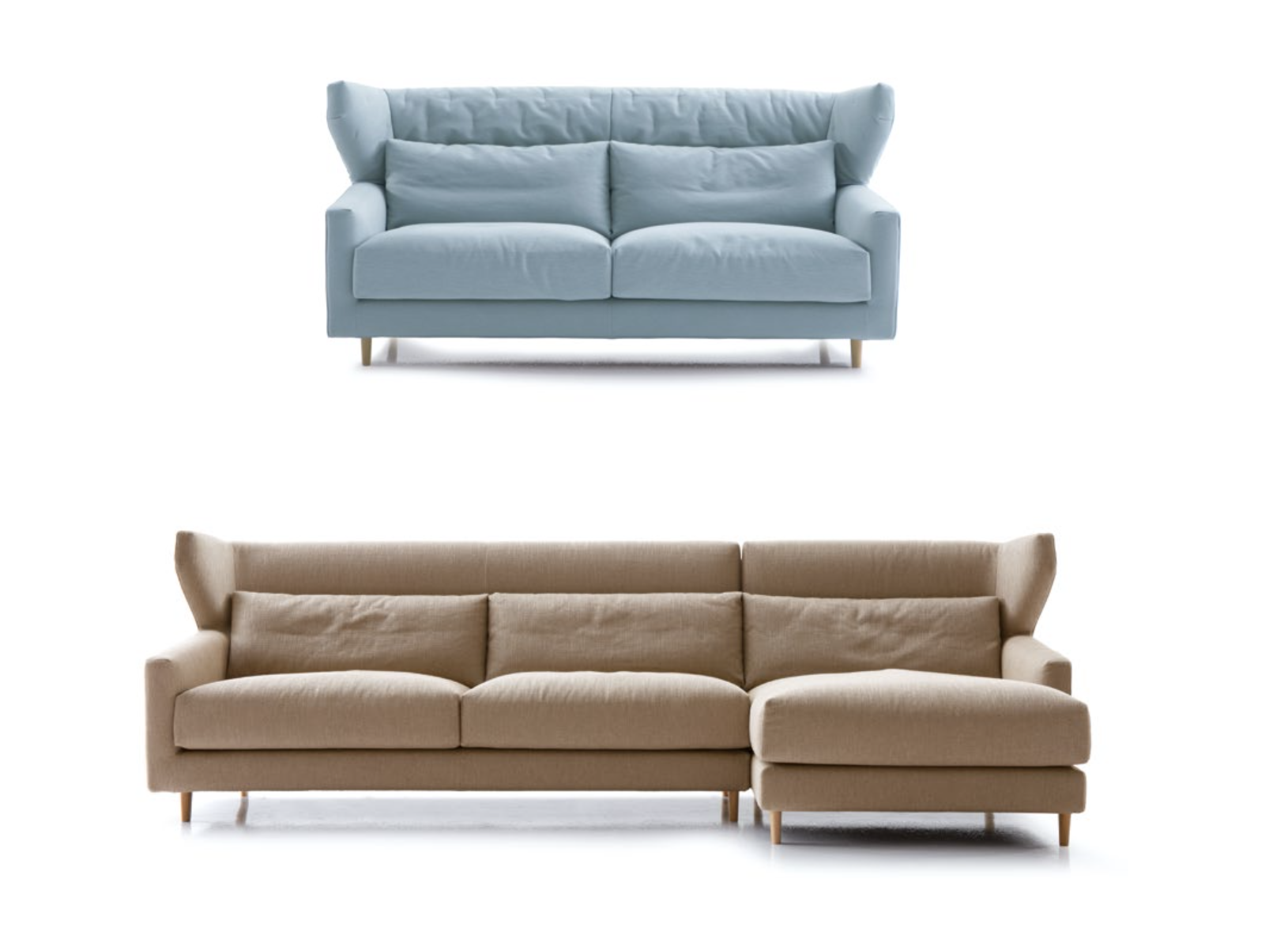 Para aunar bienestar y durabilidad, las almohadas de asiento combinan distintas densidades de espuma con una capa externa de Fiberdream (micro-fibra tacto pluma). Las almohadas de respaldo son ultra-soft. Las orejas dan carácter al diseño
