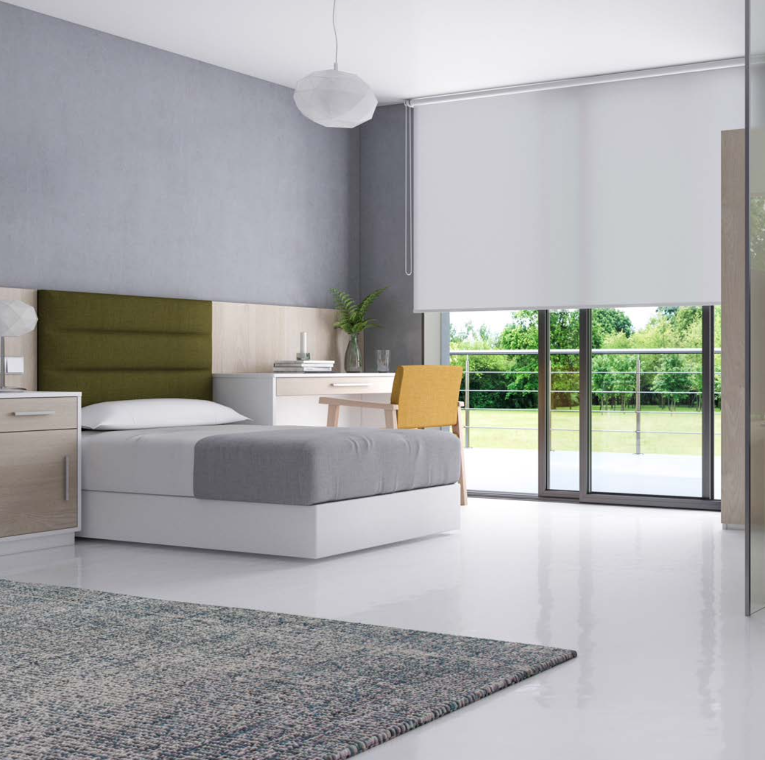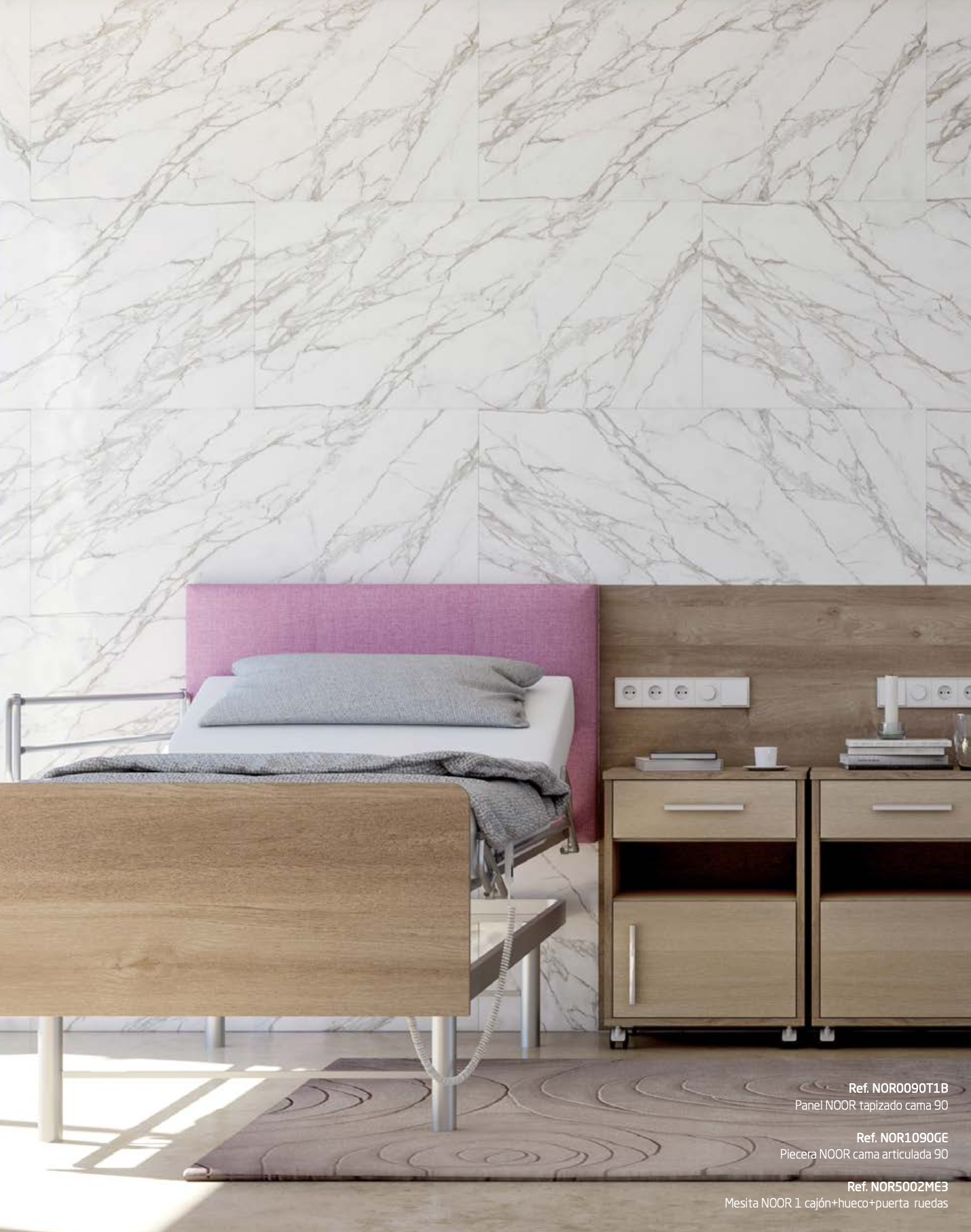 La colección de mobiliario NOOR permite crear habitaciones sumamente confortables sin renun- ciar a un cuidado diseño y una estética moderna. Piezas fabricadas en tablero melamínico de primera calidad con cantos chapados en PVC. Tiradores ergonómicos para facilitar su uso y herrajes de alta calidad aptos para uso intensivo.